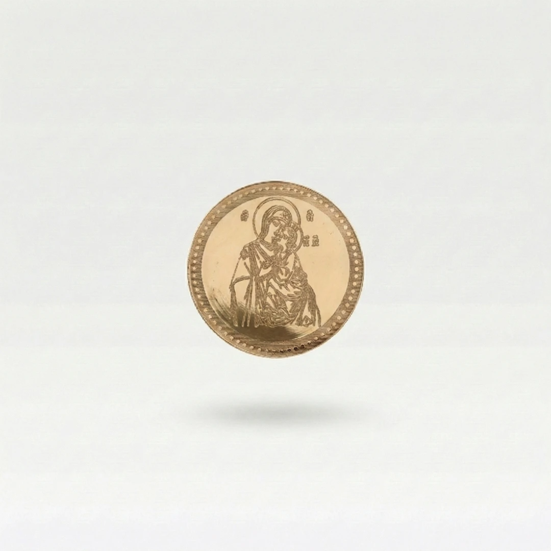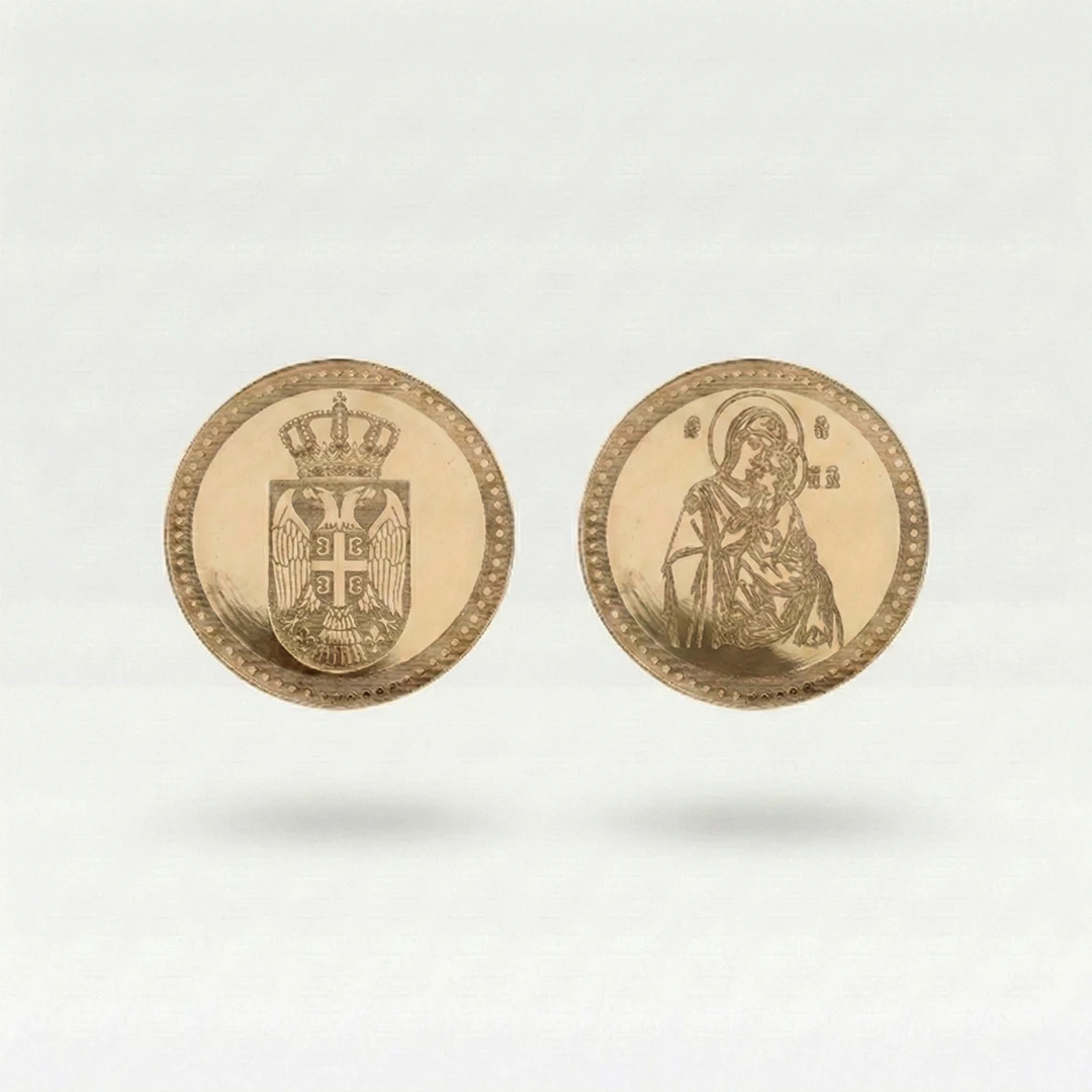 Dukat je napravljen od zlata 585 prečnika približno 18mm, uz dukat dobijate sertifikat o čistoći i kvalitetu zlatnog nakita. Mogućnost graviranja po želji. Težina 1.1gr.
