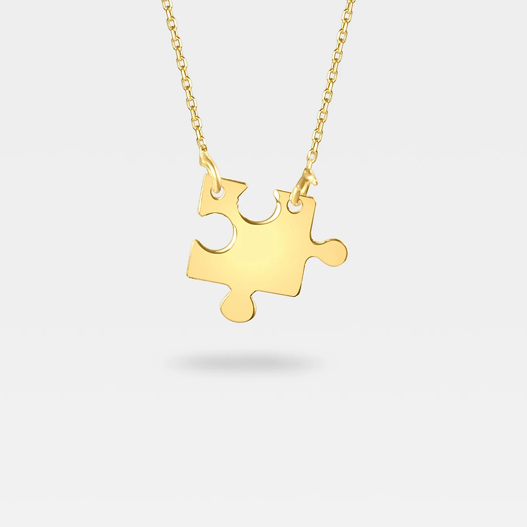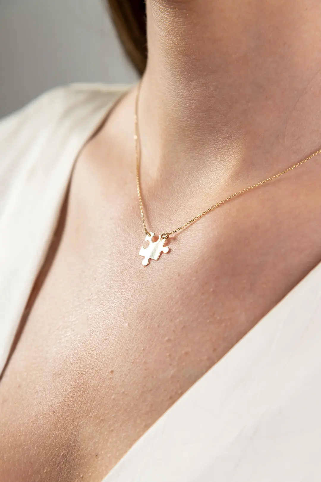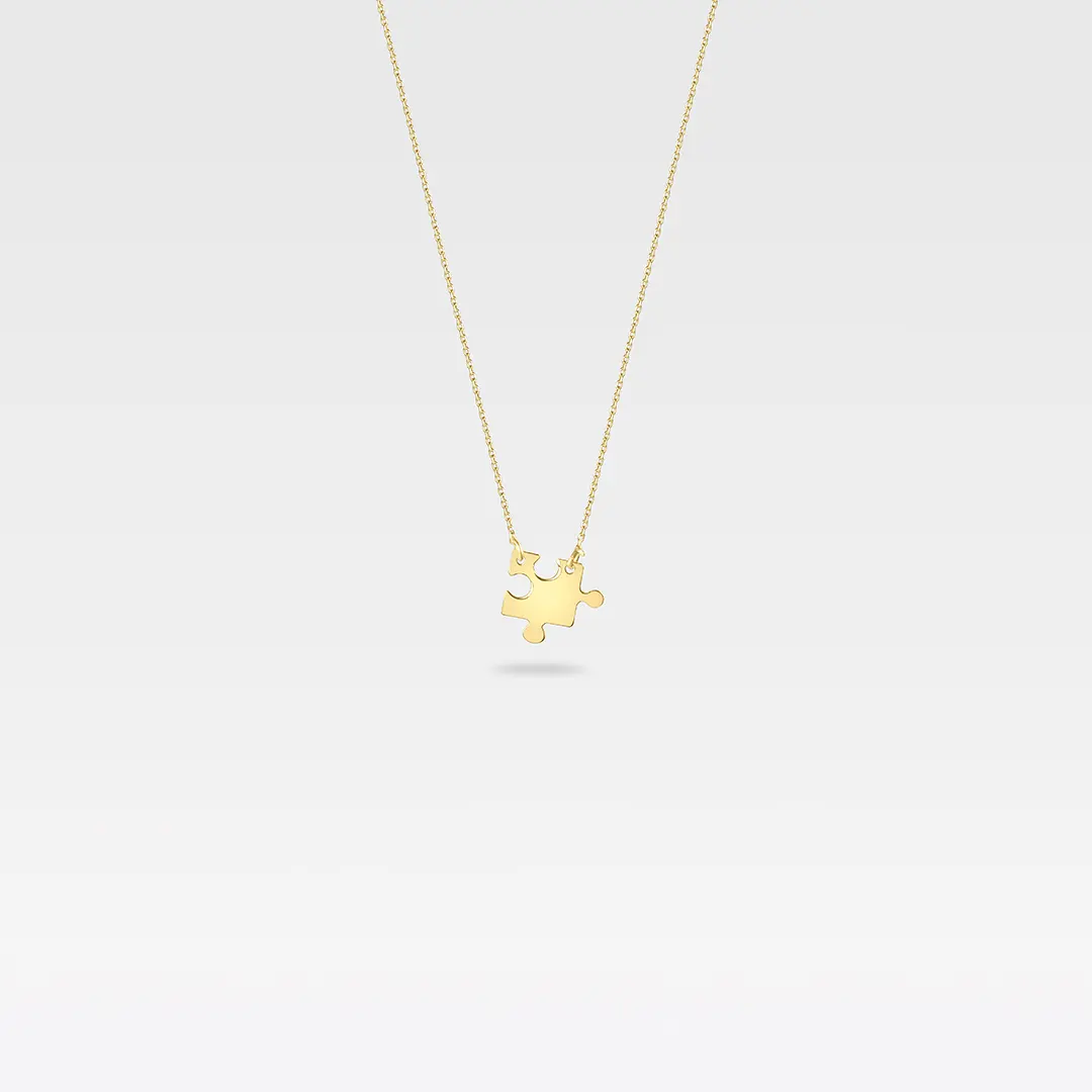 Ogrlica je napravljena od zlata 585 sa priveskom prečnika približno 10mm, uz ogrlicu dobijate sertifikat o čistoći i kvalitetu zlatnog nakita. Mogućnost graviranja puzle sa eventualno jednim slovom ili brojem.
