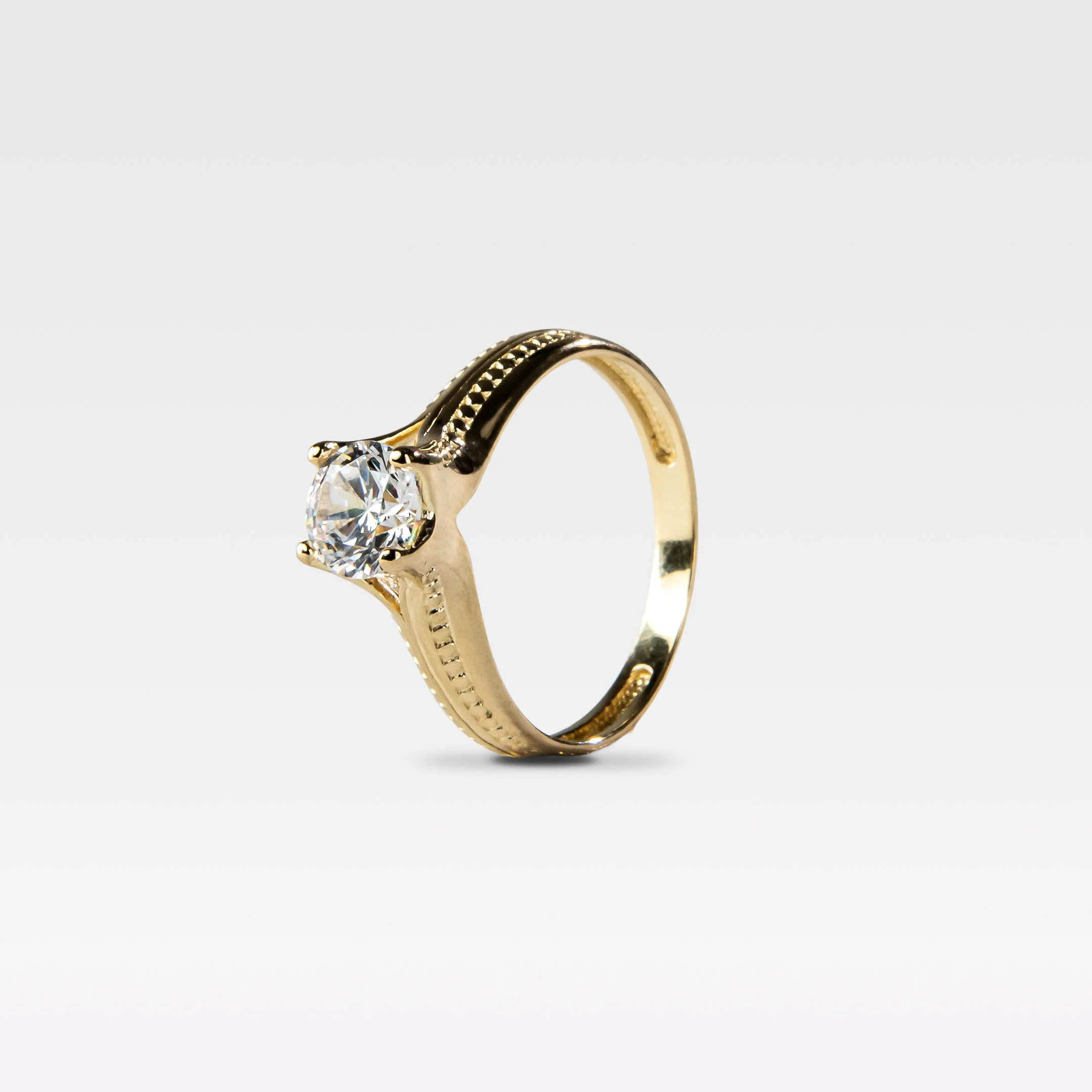 Prsten je napravljen od 14k zlata 585 uz prsten dobijate sertifikat o čistoći i kvalitetu zlatnog nakita. Prsten Izrađujemo u svim veličinama.